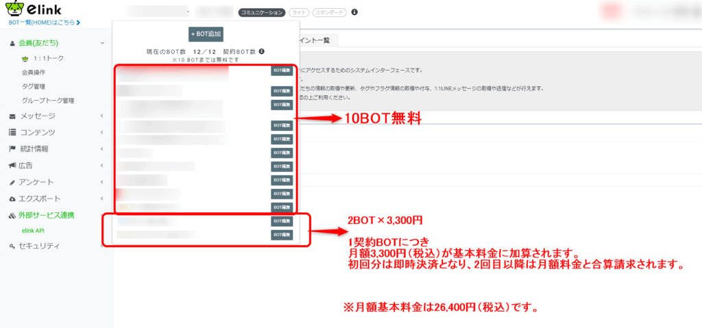 10BOTまで無料です。11BOT以降は1BOT@3,300円(税込)となります。